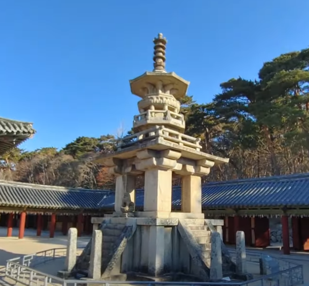 다보탑은 불국사에서 가장 유명한 석탑 중 하나로, 탑의 형태와 장식이 매우 정교하고 아름답습니다. 이 탑은 다보여래의 사리를 모신 탑으로, 그 구조와 조각은 신라 시대의 석탑 중에서도 독보적인 아름다움을 자랑합니다.