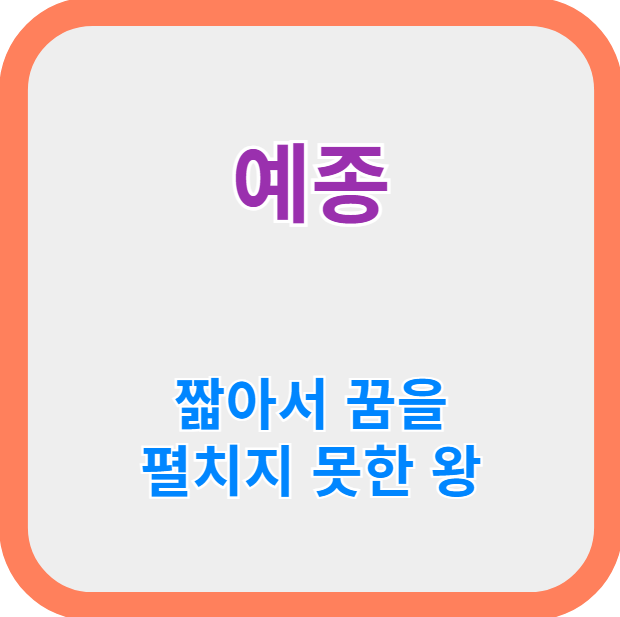 짧은 재위기간으로 인해 뜻을 펼치지 못한 예종에 대한 이야기입니다.