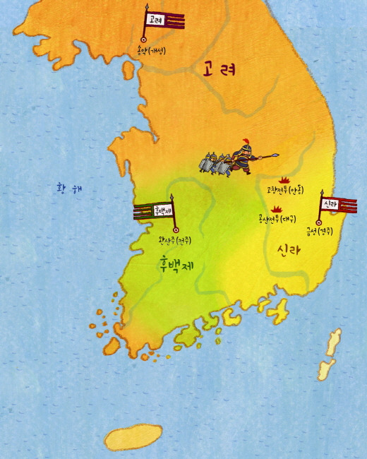 왕건의 고려와 견훤의 후백제는 한반도의 패권을 놓고 치열한 전쟁을 벌였습니다. 특히, 927년(태조 10년) 9월에는 견훤이 직접 군을 이끌고 신라로 침공하여 수도 서라벌을 함락시키는 큰 사건이 발생했습니다. 이에 태조는 1만의 병력을 이끌고 공산(公山)에서 후백제군을 공격하게 되지만, 병력 운용의 무리와 후백제군의 강력한 저항으로 인해 고려군은 대패하게 됩니다.