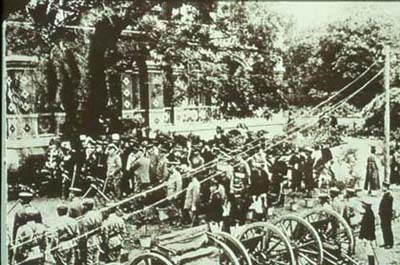 - 새벽녘, 고종과 세자(훗날의 순종)는 신하 몇 명과 함께 가마를 타고 몰래 러시아 공사관으로 이동합니다.
